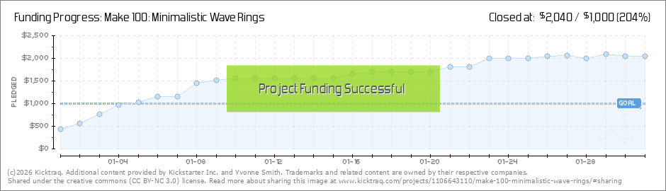 Thank you so much to all of our incredible backers for supporting the Make 100 Wavey Ring Kickstarter. Because of you, we are officially fully funded! Your belief in this project means the world, and we couldn’t have reached this milestone without... (Read More)
