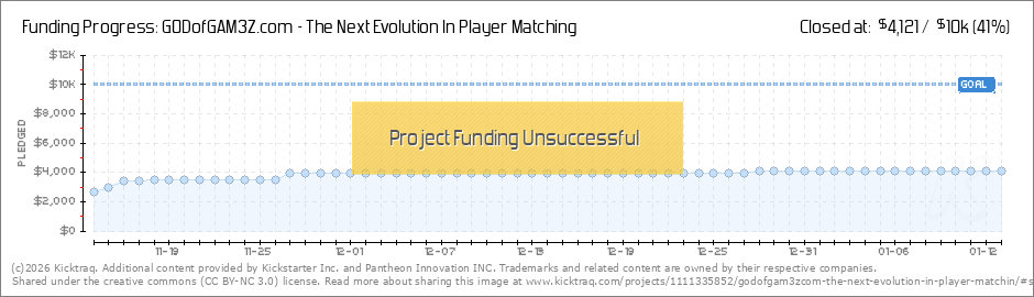 Thank you to all of our first day Backers! We appreciate your support and joining the next evolution in player matching. We are 28% of the way there (great one day effort) but we need your continued support. Please share our campaign with your... (Read More)