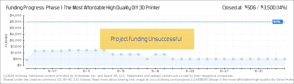 We learned a lot over the coarse of the campaign, and we thank everyone for their feedback. This is not the end of Spark 3D, and we will continue to work towards our goal of an affordable high-quality 3D printer. (Read More)