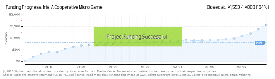 Hi Everyone, Iris has been funded with 17 days to go!!!! Thank you all so much and keep checking back for more updates. I'm very excited to start getting this game into you hands. Thank you all again. Dustin (Read More)