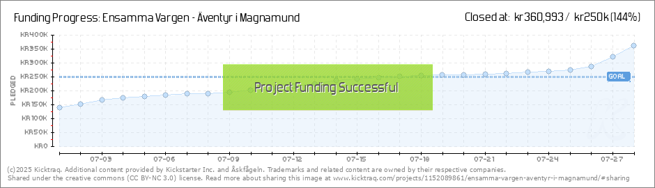 Tack för att du har backat Ensamma Vargen! Hjälp oss finansiera den här kampanjer genom att sprida den till vänner och bekanta så att vi kan börja låsa upp stretchgoals i kampanjen med utökat innehåll i böckerna, förbättrad kvalitet som... (Read More)