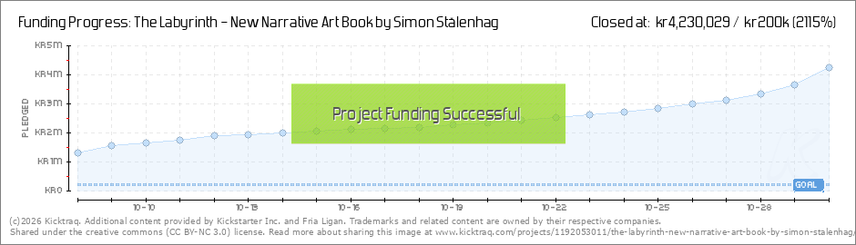 Tales from the Loop creator Simon Stålenhag’s new post-apocalyptic project The Labyrinth was crowdfunded in only 19 minutes after its launch on Kickstarter. The narrative art book has raised close to 200,000 USD during the first weekend, with still 18 days to go. (Read More)