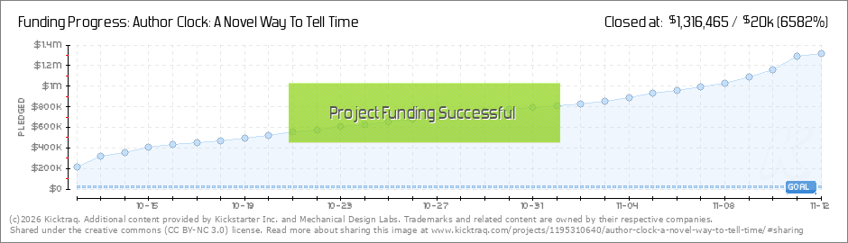 We did it! Thanks to you the Author Clock has now raised over $1,000,000 from 6,500 backers with days to spare! Unlocked! The Author Clock will now include all the stretch goal features below! Updates of quote database - We will include new quotes... (Read More)
