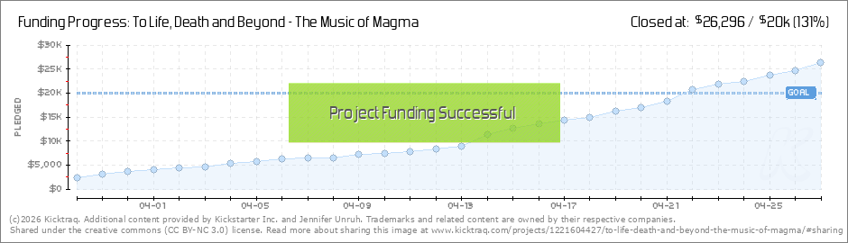 We wanted to send out a message to let our Kickstarter contributors that we reached our goal. We will be able to do the film documentary project on the music of Magma. We have met many of you online and we are honoured to have your support. Its only... (Read More)