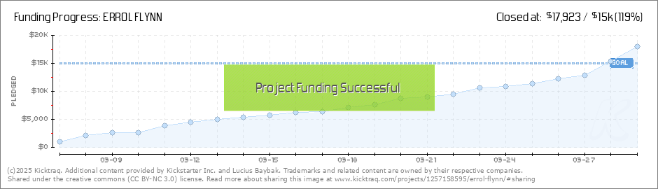 We have now reached the HALFWAY goal! Huzzah! Just wanted to thank you for backing my short, Errol Flynn. I truly appreciate the support and so look forward to bringing this little tale to a screen near you! As we are now approaching the FINAL... (Read More)