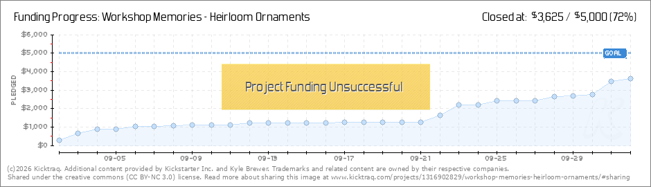 Good day everyone! I just first wanted to thank you for all the support and interest in my tool ornaments. We have 4 days left in the campaign and halfway to the targeted goal. I still remain hopeful that we can do it! I plan on doing more updates... (Read More)