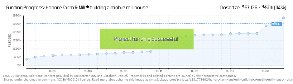 In addition to an awesome community, we are also supported by a fantastic Kickstarter team - thank you Natacha Springer! Honoré Farm and Mill is excited and grateful to be voted a Kickstarter "Project We Love"! This honor will bring more publicity... (Read More)