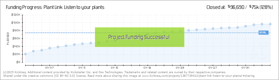 Thanks so much to all of our backers! Not only have we surpassed our initial $75,000 goal for Plant Link, we just passed the first stretch goal! We'll officially be creating a public API for any developers who might want to access the data from... (Read More)