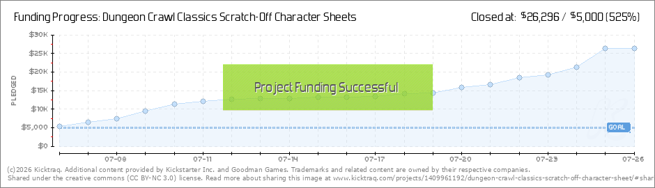 Hey Everyone! You guys are the best! In less than 24 hours, the DCC Scratch Off Character Sheets Kickstarter has been funded! We are so excited to see you guys sharing our love for this project. Plus, we are inching close to the point where the pack... (Read More)