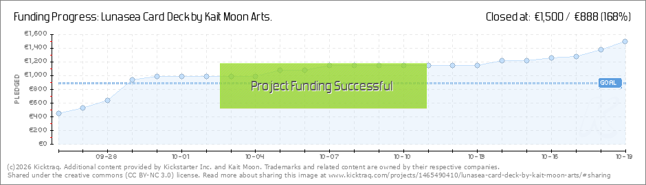 (c) Kait Moon Arts Hey Everyone! Holy cow did you blow through the first goal! In 72 hours we surpassed our original €888 goal to get the decks printed. They will go to print at the end of the campaign! Yay!!! You are all amazing! What a wonderful... (Read More)