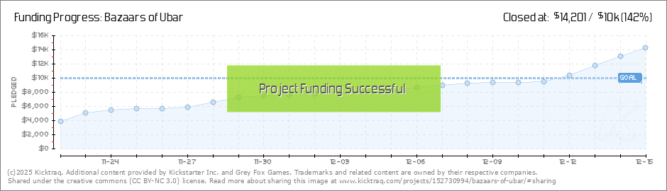 Hey everyone! Bazaars of Ubar is off to a great start and we look forward to funding. We have all kinds of cool daily unlocks to show off, so make sure you check back in with the campaign on a regular basis to see what we have in store for you!... (Read More)