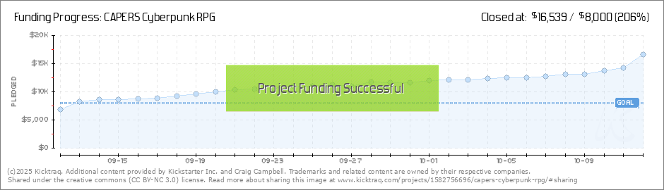 Hey there, cyberpunks, We are funded! Thank you so much for making that happen. CAPERS Cyberpunk is going to be a real game book. The team and I are very excited to bring this iteration of CAPERS to you and we hope you really dig it. Stretch Goal... (Read More)