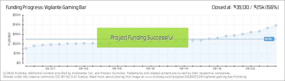 Vigilantes! Today we had a happy coincidence: we had our 200th backer AND they pushed us over the edge of our $30,000 stretch goal! This stretch goal gives us access to the remaining custom table electronics we need: a Call for Service button at... (Read More)