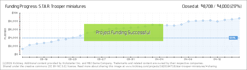 We've added a few stretch goals to fill in the void between the $6000.00 and $10500.00 levels. We'll try to refine the Heavy laser trooper some more as time permits. For now we have an initial sketch to give you an idea of what we're thinking... (Read More)