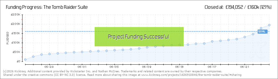 Dear Suite Backers, I have added 2 more reward tiers as requested: TOMB RAIDER SUITE SCARAB for £90 TOMB RAIDER SUITE SEAL OF ANUBIS for £100 These are for people who would like just the Media items. Kind regards Nathan. (Read More)