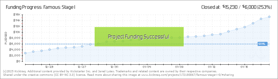 I know that some big Kickstarter campaigns brag about being "funded in 8 minutes", but 'Famous' is just an indie project on a shoestring budget, with no shenanigans going on; so I am over the moon that we passed 50% of the goal in just over 1 day!... (Read More)