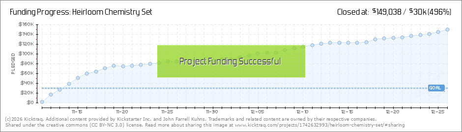 I have been asked what will be done after the successful completion of the Kickstarter Project. My plans are to keep in touch with everyone who pledged and to form a special Heirloom Chemistry Set Council. This council will communicate online... (Read More)
