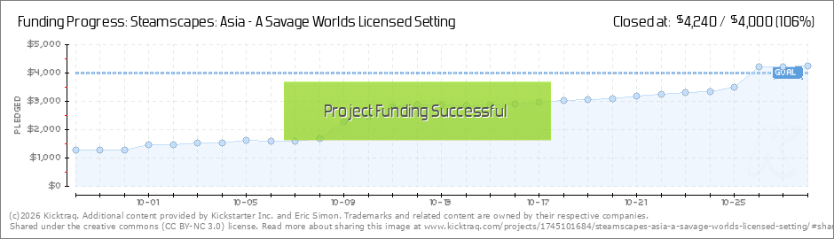 Historical Asian Steampunk! The second of the major setting books for the Steamscapes RPG setting.