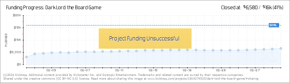 Hello, backers and future backers! I just want to take the time to say thanks for making our first day of the Dark Lord: the Board Game Kickstarter campaign a success. This initial burst of interest and pledges makes us very happy and proud. We... (Read More)