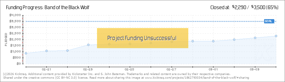 Update time! First though, I wanted to thank all the day 1 and 2 backers. We're making headway and we're 1/3 of the way to our goal! Thank you! Update Band of the Black Wolf is an adventure module in a way that presents a situation ripe to explode... (Read More)
