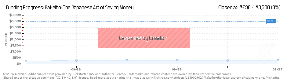 Help your backers reach your daily goals and help others see how you're doing. It's easy, with Kicktraq Mini.Here are a few quick snippits of code you can use to embed your personalized widget on your website, in your blog, and even on your favorite forum.