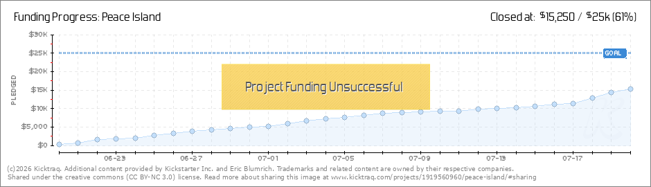 We are not going to make it - this time.In order to reach our goal, Peace Island has to pull in almost 1300 dollars per day in pledges, every day, until this Kickstarter ends.To date, the absolute best day Peace Island has had on Kickstarter is 910... (Read More)