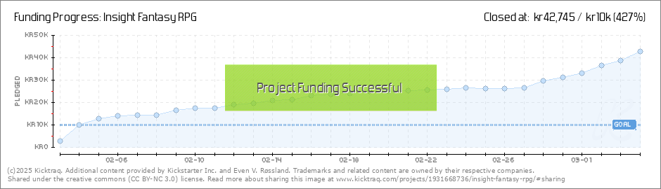 It took exactly 36 hours. Insight Fantasy is FUNDED! Thanks again to everyone for your support. You are awesome! The first stretch goal seems to be within reach; a printed copy of the GM’s Compendium to all backers who pledged for the PDF... (Read More)