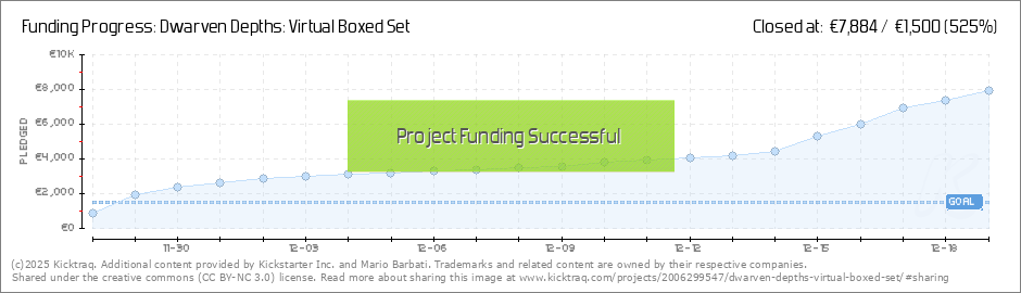 After exactly one week of campaigning, we got great results! Dwarven Depths: Virtual Boxed Set was funded in less than 48 hours and is currently 210% funded. We have unlocked as many as 5 stretch goals and have more to come. I want you to know that I... (Read More)