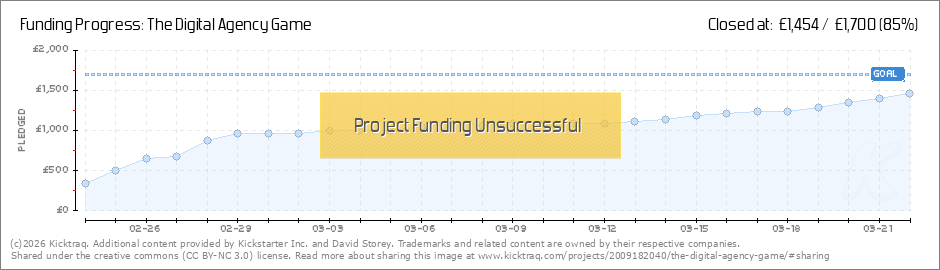 Hello everyone and welcome to the project's first update! Just a super quick one today - within the first 24 hours of The Digital Agency Game being on Kickstarter, we have reached 20% towards being funded. Which is a rather lovely start to the... (Read More)