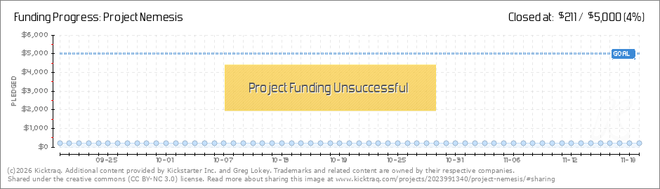 Funding the Nemesis project for materials as well as to 3d scan him and have him 3d printed at different sizes.