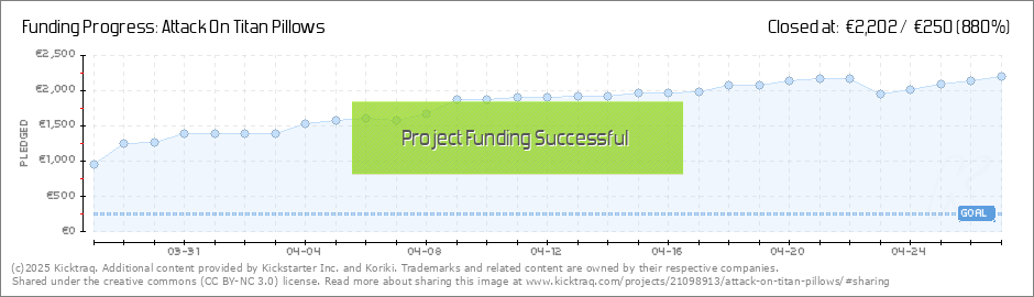 Hey there ! how are you ? 40 hours left before the kickstarter campaign ends gosh i'm so excited ! I can't wait to send your pillows <3 So for the end of the kickstarter ! I decided to add 2 more designs for my SNK pillows hope you like them !!... (Read More)