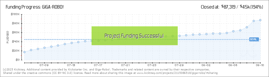 Howdy! Thank you so much for supporting Giga-Robo. We have some updates for the campaign, news, and more. News Right as I was writing this, we became a Top 10 project on Kicktraq! We were rated on Smarter Backer As of writing this, we've hit 106... (Read More)
