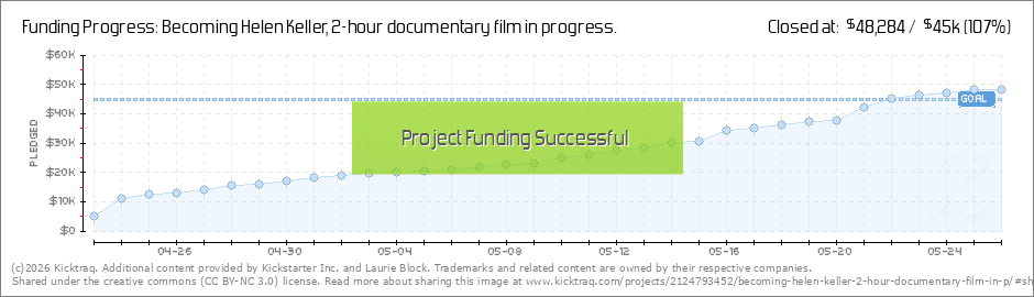 A BIG THANK YOU to all the NEW BACKERS. We've added our Trailer from the Becoming Helen Keller project's website to the Kickstarter page: http://kck.st/2F8YaWf. It is captioned, but sometimes the Vimeo captioning tool can be a bit wonky. It should... (Read More)