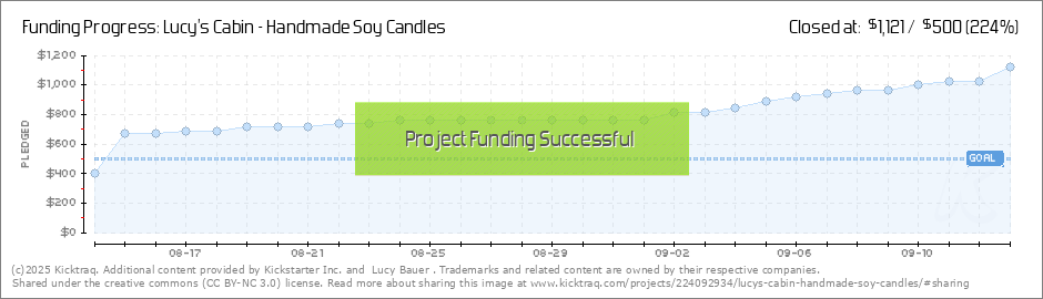 Wow! Thank you all so, so very much for believing in Lucy's Cabin and pledging your hard-earned money to my business. I am about to jump out of my skin because of all your generosity! I guess hiring that Amelia Sherman was a good idea, huh? ;-)... (Read More)