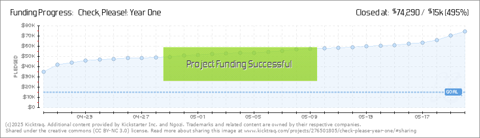 Somehow, there are still 18 days left of Kickstarting to get the Check, Please! Year One book ready and printed. That's two and a half weeks for you, me, and the other 1009 backers (!!) to watch the pledges tick up, and hope that we can keep hitting... (Read More)