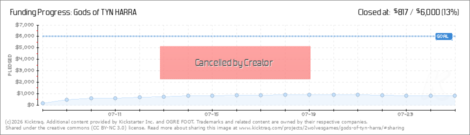 Hello Everyone, I am writing to inform you, I am going to terminate the kickstarter for Gods of TYN HARRA. It is apparent to me, the goal of $6000 will not be achieved. My inexperience running a kickstarter campaign is to blame for its failure.... (Read More)