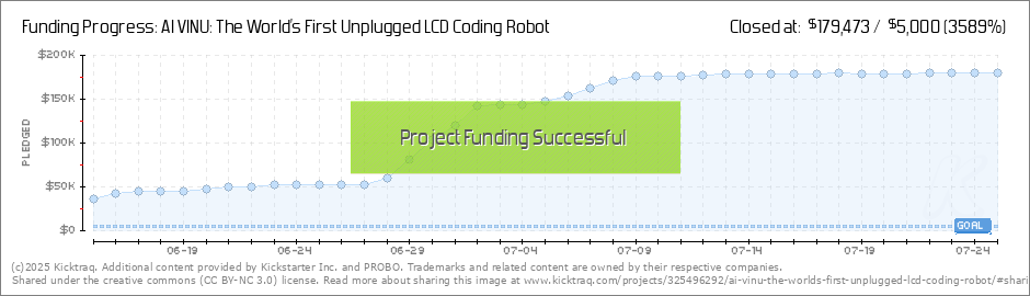Hello Everyone! It's PROBO Team, Thank you for all your interests and supports for our AI VINU: The World’s First Unplugged LCD Coding Robot campaign. We didn't know our campaign reached 100% this fast. AI VINU campaign will be on Kickstarter for... (Read More)