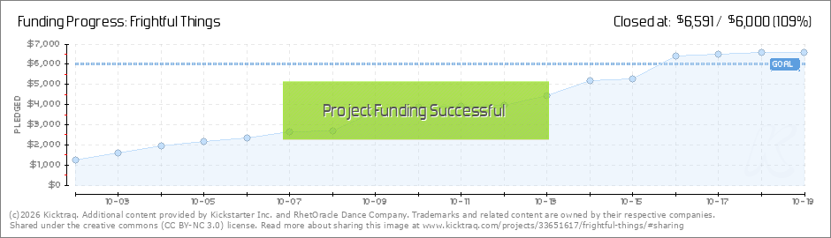 Dear Backers, You guys are GREAT! We made our goal with 2 days to spare and we even surpassed it a little. Thank you for helping us make sure we can bring all the elements of our show into frightful fruition. If you know anyone who still wants to... (Read More)