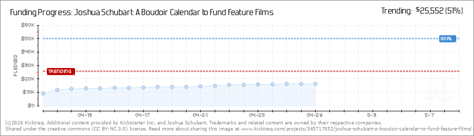 Hello everyone! This morning I woke up to the most wonderful news, Kickstarter has selected this project as "A project we love"!!!!! What does that mean? Well, the email says; "Congratulations! We’ve selected Joshua Schubart: A Boudoir Calendar to... (Read More)