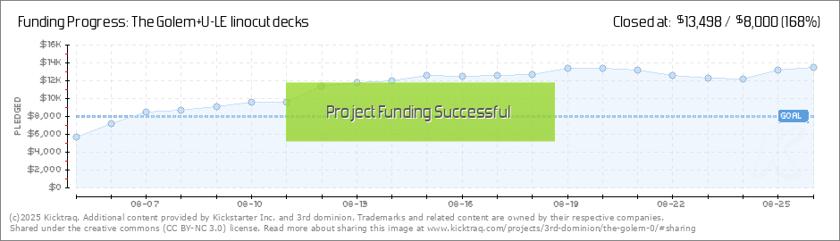 Help your backers reach your daily goals and help others see how you're doing. It's easy, with Kicktraq Mini.Here are a few quick snippits of code you can use to embed your personalized widget on your website, in your blog, and even on your favorite forum.
