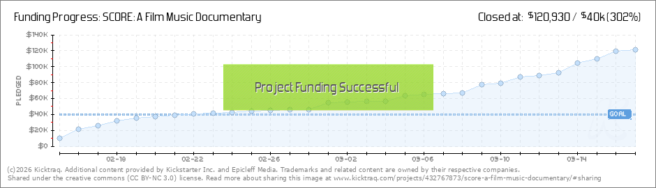 Dear Backers, WHAT A START WE'VE HAD ON KICKSTARTER! Your continued support of SCORE has been amazing. We're now a featured documentary on Kickstarter! You're helping us achieve our dream of making the most definitive documentary about film scoring... (Read More)