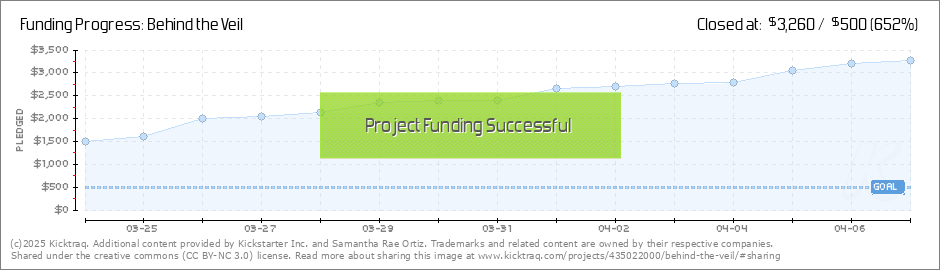 Everybody! We made it to Stretch Goal 6! That means more fun things for all of you! Here's the recap of all the incredible things you're getting! Nyine City Artwork Print Deleted Scenes from Behind the Veil Short Story Anthology (complete with 3... (Read More)