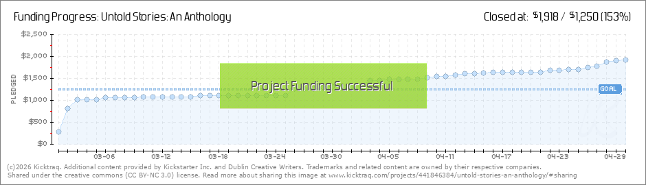Thank you all for the support! The project is officially funded at our minimum goal. This means that we have the funds to cover our basic publication costs. That is a great thing since we already have 5 submissions or twisty, fun stories you won't... (Read More)