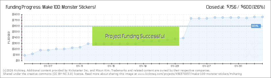Hello everyone! This morning, we hit the $600 initial campaign goal! Thank you so much! We also hit the $700 mark, so all physical backers get a random assortment of bookmarks and paper stickers. It'll be a combination of over $10, as my way of... (Read More)