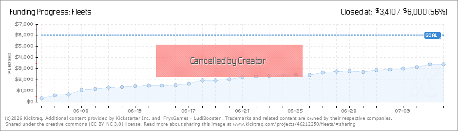 Unfortunately our Kickstarter campaign for Fleets will not reach it's goal. This means that all pledges will be cancelled and funds returned. Thank you everyone for your support and encouragement! We plan to print Fleets anyway (with a higher... (Read More)