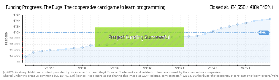 Vous êtes les meilleurs ! Grâce à vous, la campagne a été complètement financée 7 jours avant la fin, les Bugs vont prendre vie ! Merci à vous de nous soutenir et d'avoir cru en nous ! Pour vous remercier, nous publierons une petite surprise... (Read More)