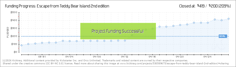 We have opened the backer level to get a print copy of Escape from Teddy Bear Island 2ed. This will be a sadle stitched black and white 5.5x8.5 sized game. (Read More)