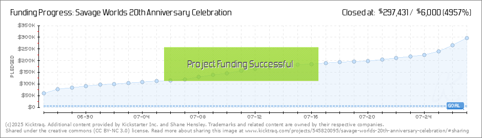 Follow us at Twitch.tv/peginc The Savage Worlds 20th Anniversary Celebration Kickstarter has moved into counting hours, not days! A few reminders and announcements: 1. Check Your Pledge. If you want to grab special Kickstarter-only pricing (like... (Read More)