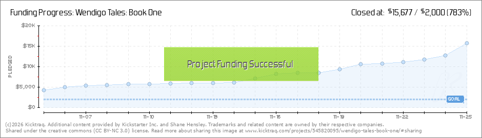 This Kickstarter for Wendigo Tales Volume One is for five stories, but make no mistake—as evidenced by the FOUR BOOKS now included in the $90 All In! reward level, we've got BIG PLANS for more stories! (Be sure to read to the bottom for how to get... (Read More)