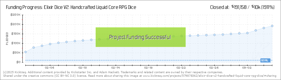Hello All! I can't thank you enough for all of your generous support. We're so excited to be able to make these new Elixir Dice a reality! Our Pledge Manager will be launching in around 2 weeks. I will post an update as soon as it is live. This... (Read More)